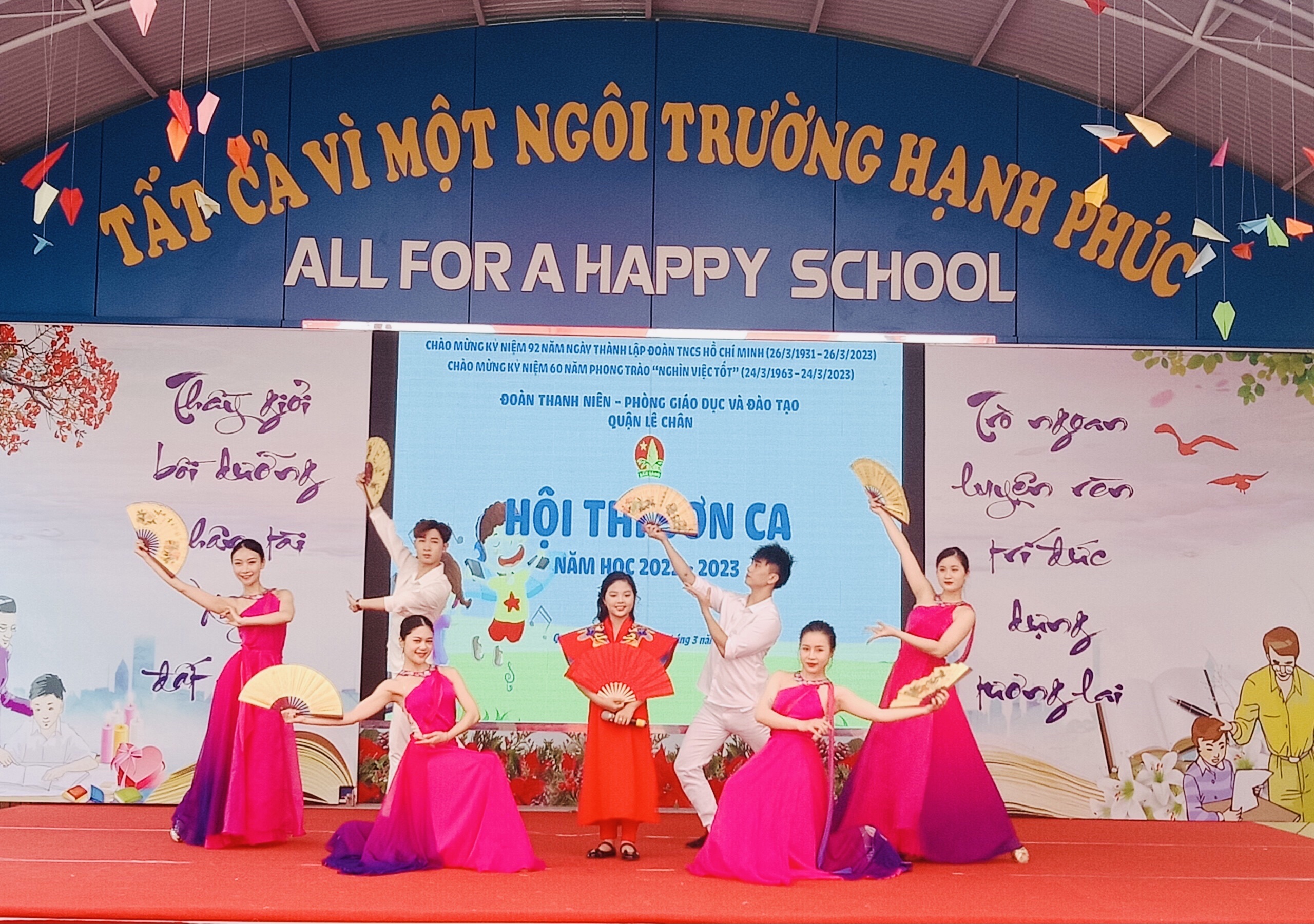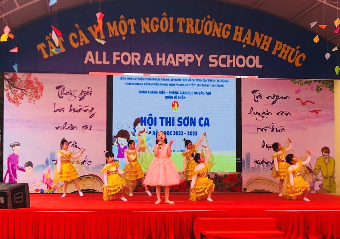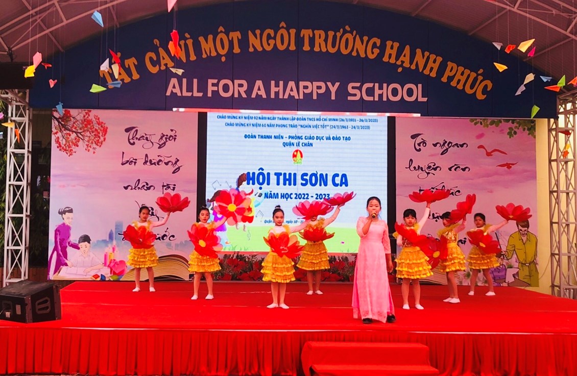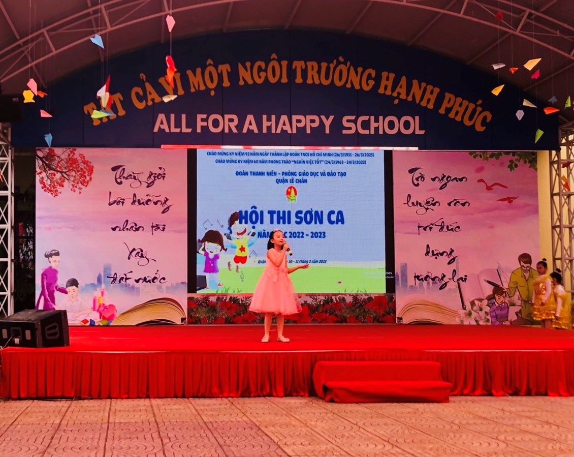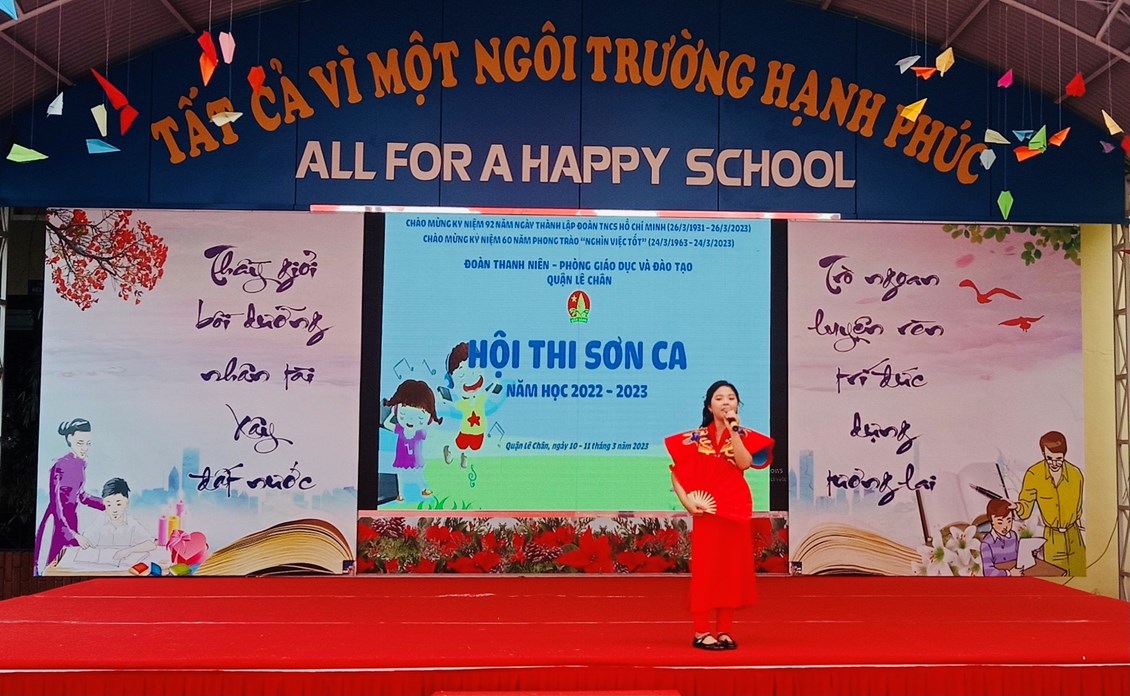 Thực hiện Kế hoạch số 18-KH/LN ngày 03/3/2023 của Quận Đoàn - Phòng GD&ĐT quận Lê Chân về việc tổ chức Hội thi Sơn ca cấp quận năm học 2022-2023, sáng ngày 11/03/2023, Quận đoàn – Phòng Giáo dục và Đào tạo quận Lê Chân tổ chức hội thi Sơn Ca quận Lê Chân năm học 2022 - 2023 chào mừng Kỷ niệm 92 năm ngày thành lập Đoàn Thanh niên Cộng sản Hồ Chí Minh (26/03/1931 – 26/03/2023) và 60 năm phong trào “Nghìn việc tốt” (24/03/1963 – 24/03/2023).