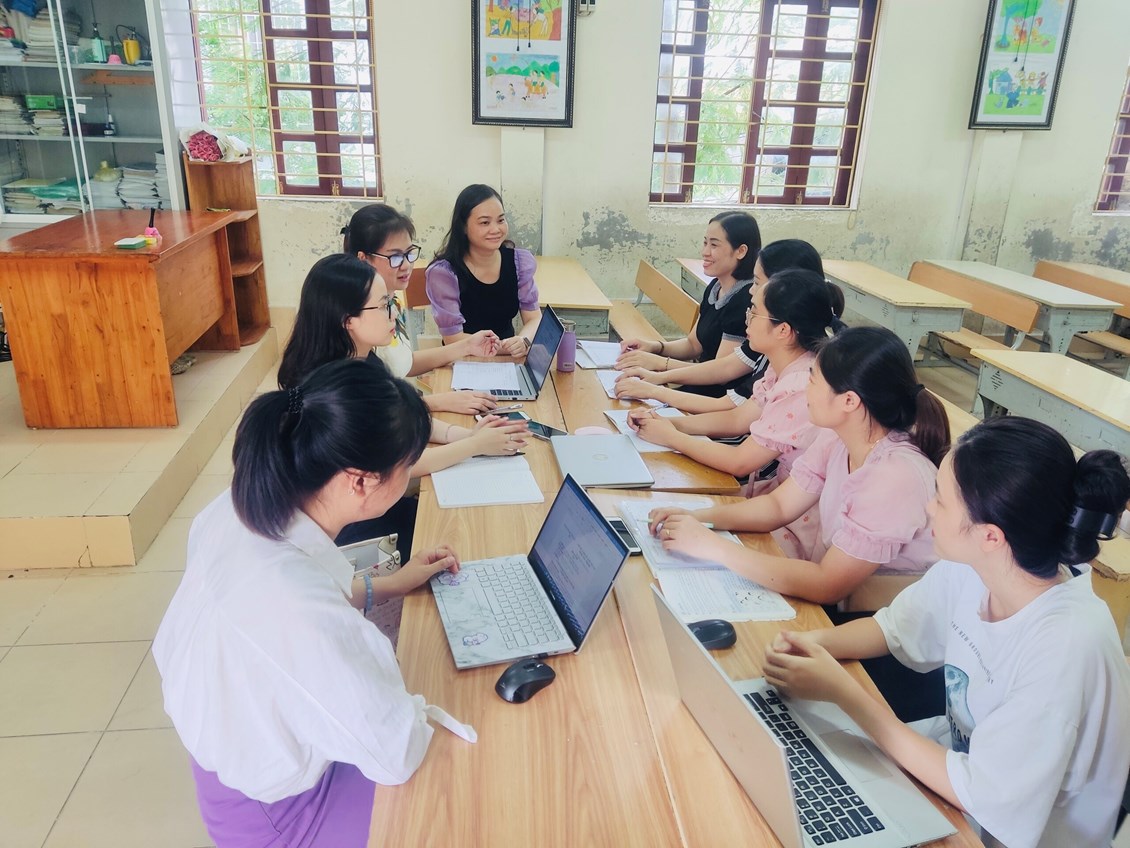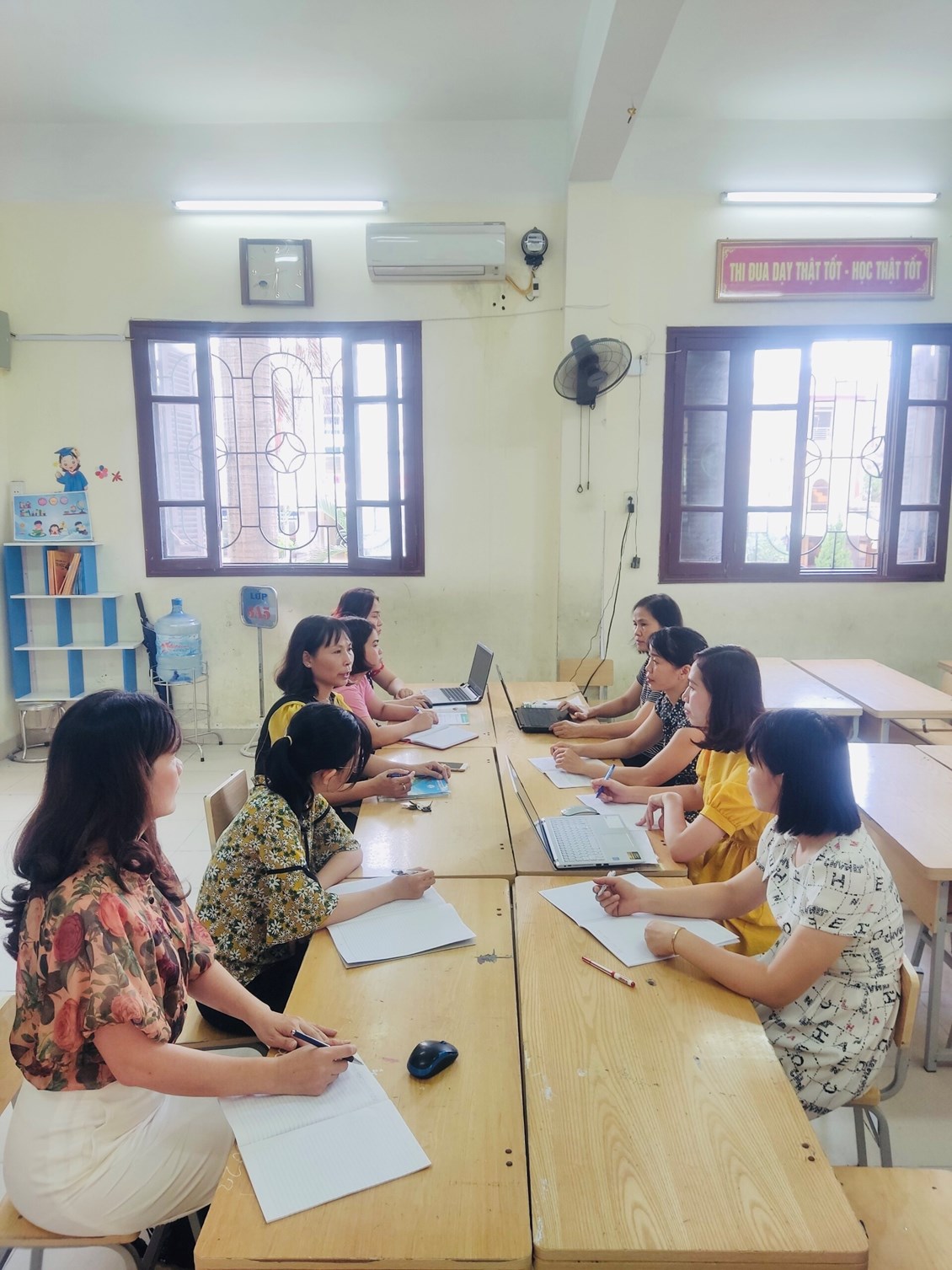 Cùng với đó, xác định tầm quan trọng của việc bồi dưỡng chuyên môn, ngay sau đợt học tập huấn Sách giáo khoa lớp 3 Chương trình GDPT 2018, Ban giám hiệu nhà trường đã chỉ đạo giáo viên các tổ chuyên môn nghiêm túc nghiên cứu bài dạy, lựa chọn các phương pháp hình thức tổ chức tiết dạy ngay từ đầu tháng 8/2022. Ban Giám hiệu nhà trường đã phân công giáo viên thực hành dạy các tiết ở tất cả các phân môn dù chưa có học sinh tới trường với tổng số các tiết dạy là 20 tiết. Sau tiết dự giờ, BGH trực tiếp chỉ đạo, thảo luận, góp ý tiết dạy, tập trung vào phân tích các hoạt động học của học sinh, tìm ra các giải pháp phù hợp giúp học sinh thực hành đạt kết quả cao trong tiết học và thống nhất quy trình các bước dạy của môn học nhằm tạo cơ hội cho tất cả giáo viên nâng cao năng lực chuyên môn, kỹ năng sư phạm và phát huy khả năng sáng tạo trong việc áp dụng các phương pháp, kỹ thuật dạy học.