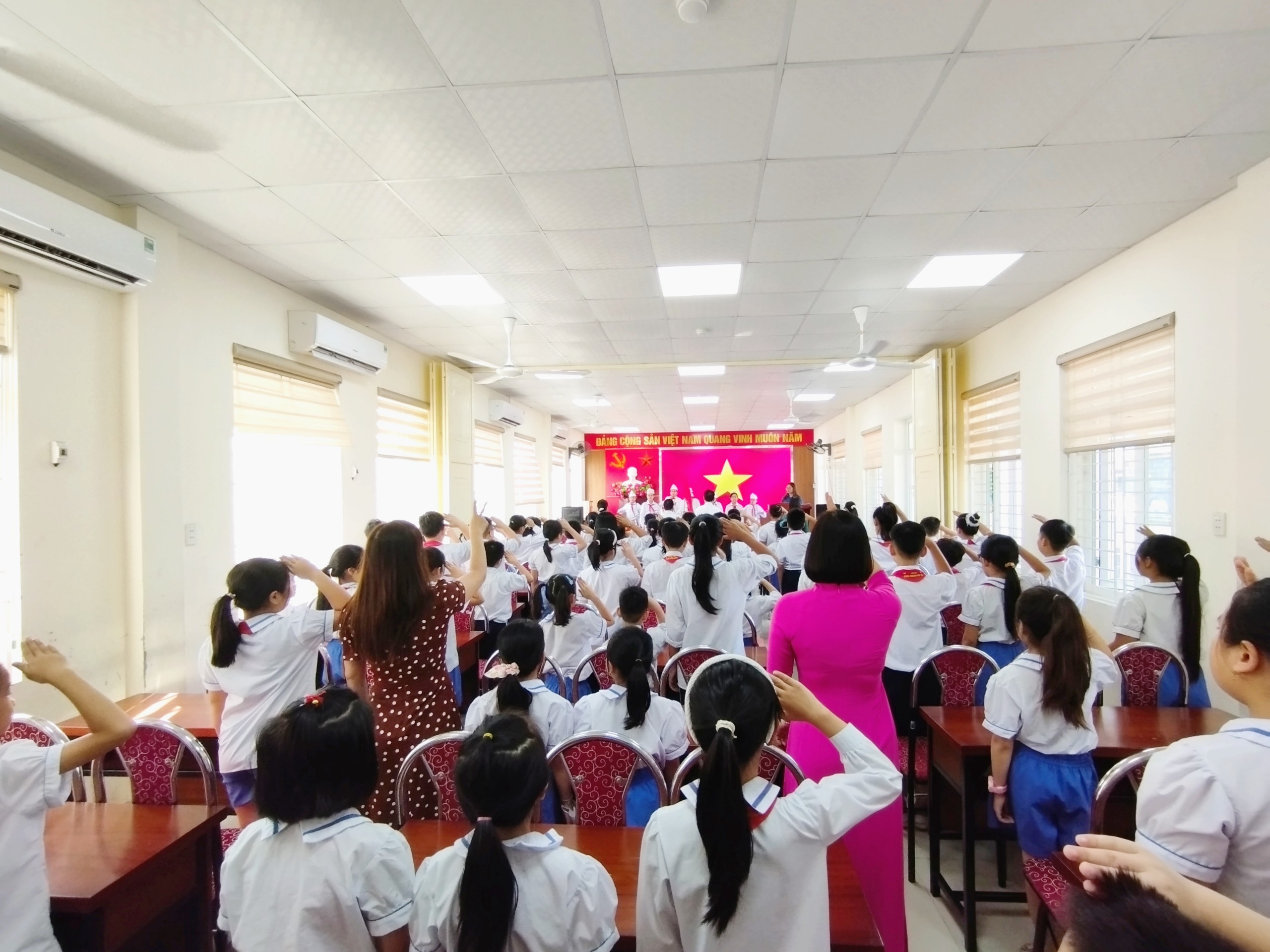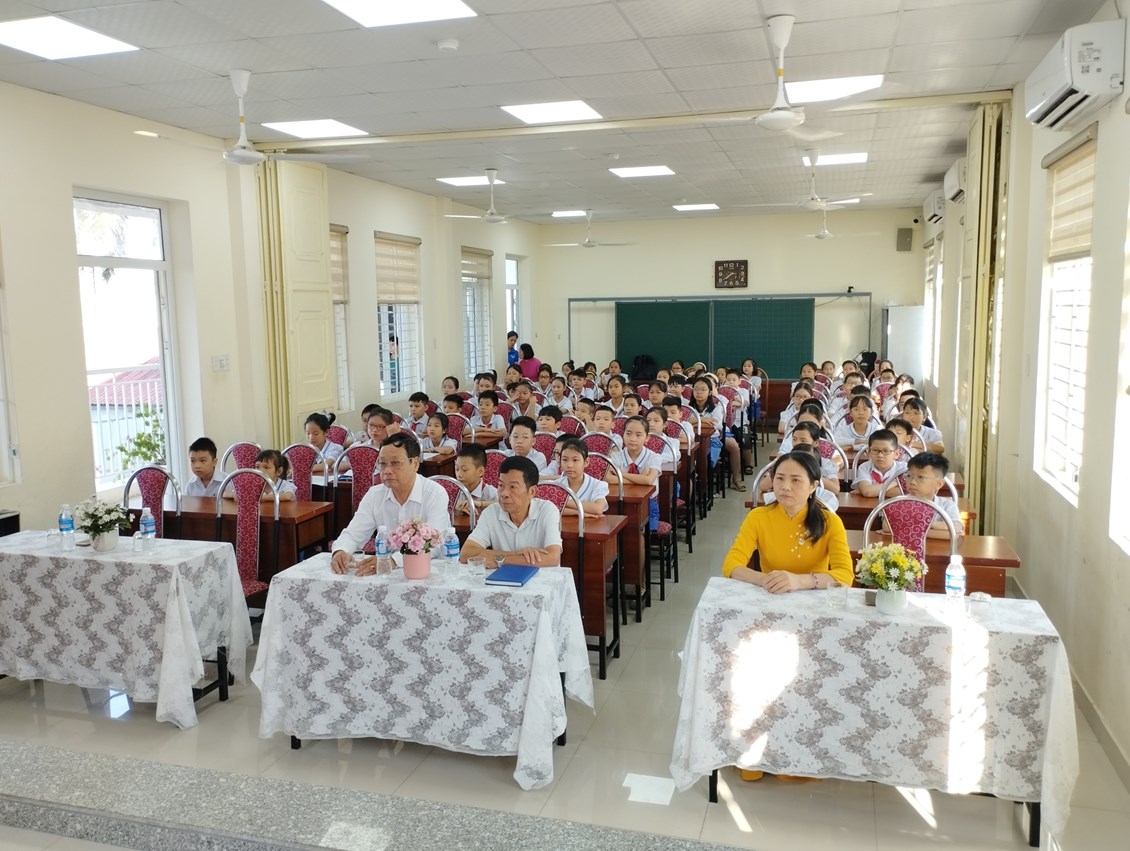 Lễ chào cờ có sự tham dự của Ban giám hiệu cùng tất cả cán bộ, giáo viên, nhân viên và các em học sinh trong nhà trường. Tại buổi sinh hoạt, Liên đội đã nhận xét, đánh giá hoạt động công tác Đội và phong trào thiếu nhi tháng 9/2023, biểu dương các lớp nhi đồng, chi đội xuất sắc trong tháng 9: 1A5, 1A7, 2A4, 3A8, 4A3, 5A5.