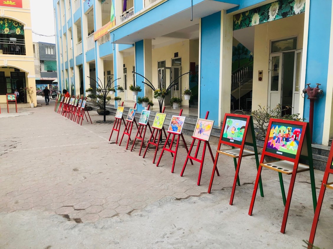 Công trình được của Tổng Đội Thanh niên xung phong hỗ trợ 80 lít sơn, được hoàn thành bởi sự hỗ trợ, tư vấn của các giáo viên Mĩ thuật trong nhà trường, giúp tạo cảnh quan khu vệ sinh trường học "Xanh - Sạch - Đẹp". Đồng thời, giáo dục cho các em đội viên, học sinh, nhi đồng nâng cao ý thức giữ gìn vệ sinh chung, bảo vệ môi trường. Đây là hoạt động thiết thực nhằm giáo dục cho các em học sinh ý thức giữ gìn cảnh quan chung, hành động văn minh trong giữ gìn nhà vệ sinh sạch sẽ, thân thiện, thoải mái;…