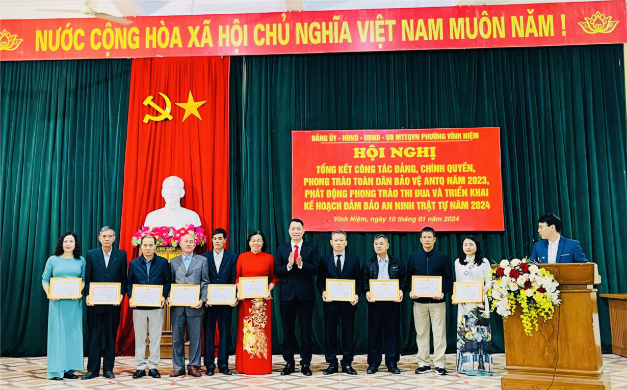 Sáng ngày 10/01/2024, Đảng uỷ - HĐND - UBND - UBMTTQ Việt Nam phường Vĩnh Niệm tổ chức Hội nghị tổng kết công tác Đảng, công tác chính quyền, phong trào thi đua năm 2023, phát động phong trào thi đua và triển khai công tác đảm bảo an ninh trật tự năm 2024.