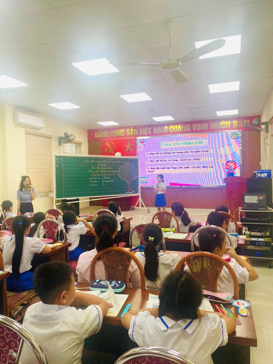 Cô giáo đã linh hoạt vận dụng Thông tư 27/2020/TT-BGDĐT trong đánh giá học sinh, sáng tạo trong việc để HS tự nhận xét và tham gia nhận xét sản phẩm học tập của bạn, nhóm bạn trong quá trình thực hiện nhiệm vụ học tập và khuyến khích các em bằng nhiều hình thức khen thưởng khác nhau: tặng quà, sticker tích lời khen,… Tiết học sôi nổi hơn bởi những tràng pháo tay khen ngợi của học sinh dành cho bạn khi có những câu trả lời hay, những bài đọc tốt,...