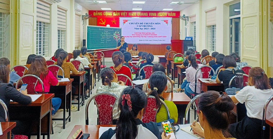 Thực hiện kế hoạch chuyên môn năm học 2023-2024, chiều ngày 14 tháng 9 năm 2023, trường Tiểu học Vĩnh Niệm đã tổ chức chuyên đề cấp trường “Linh hoạt trong hình thức đánh giá học sinh theo Thông tư 27/2020-BGDĐT trong dạy học môn Tiếng Việt lớp 3 CT GDPT 2018”.