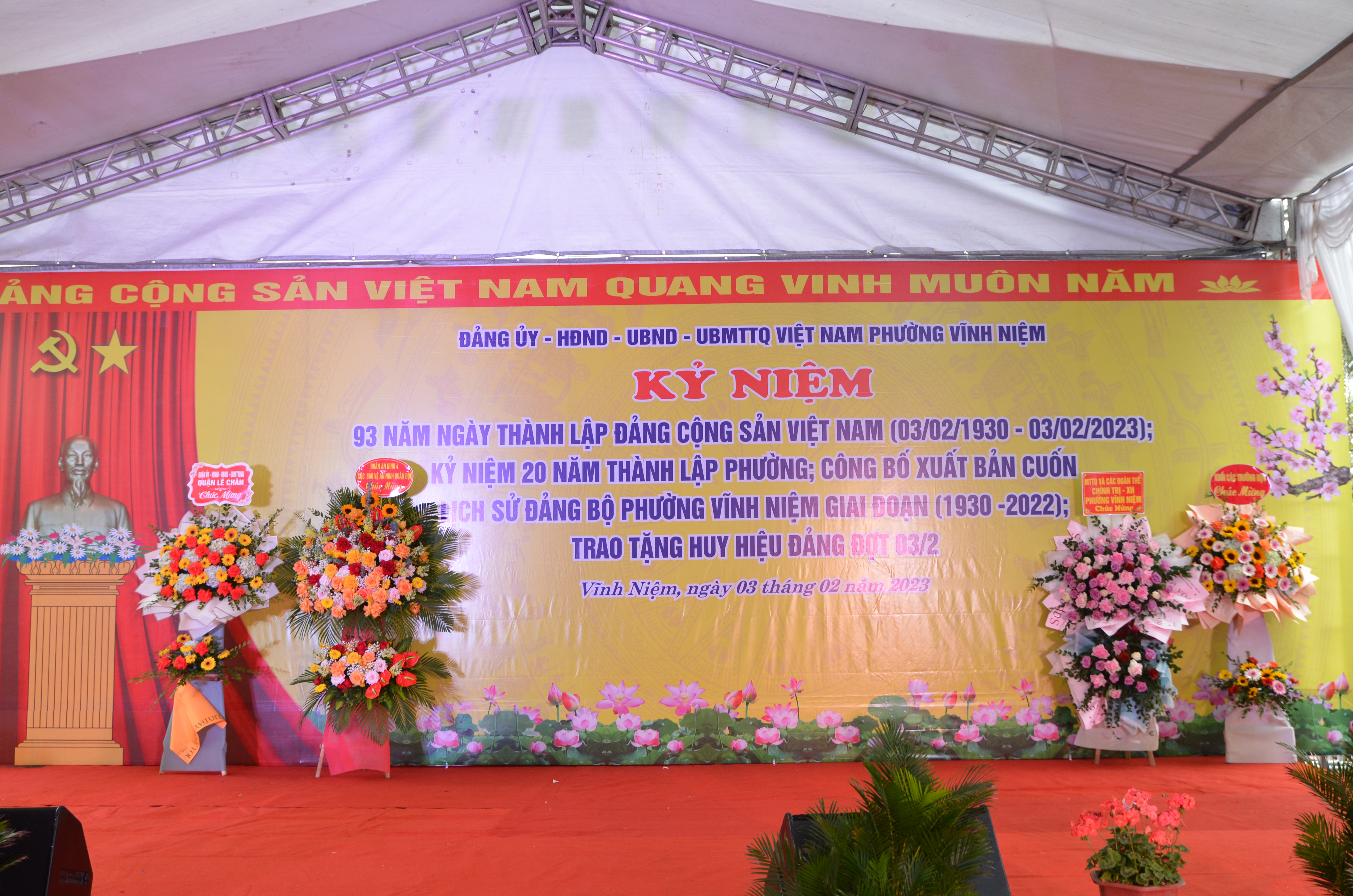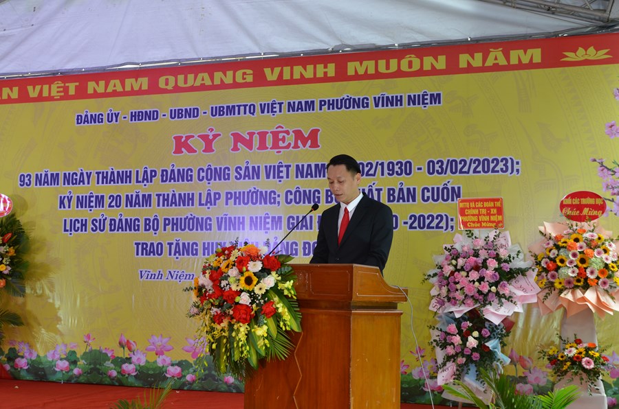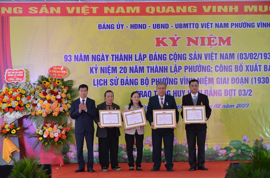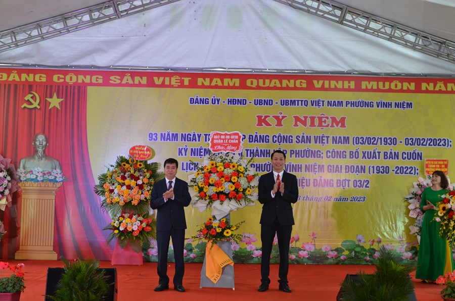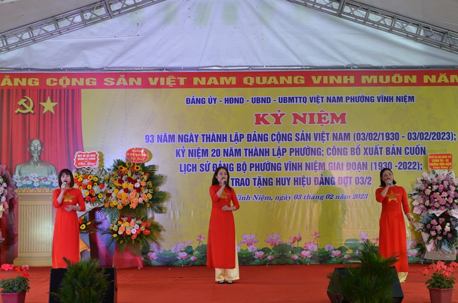 Sáng ngày 03/02, Đảng ủy - HĐND - UBND - Ủy ban MTTQ Việt Nam phường Vĩnh Niệm (quận Lê Chân) tổ chức kỷ niệm 93 năm Ngày thành lập Đảng Cộng sản Việt Nam (3/2/1930 - 3/2/2023); kỷ niệm 20 năm thành lập phường (2003 - 2023); công bố xuất bản cuốn Lịch sử Đảng bộ phường, giai đoạn 1930 - 2022 và trao tặng huy hiệu Đảng đợt 3/2/2023.