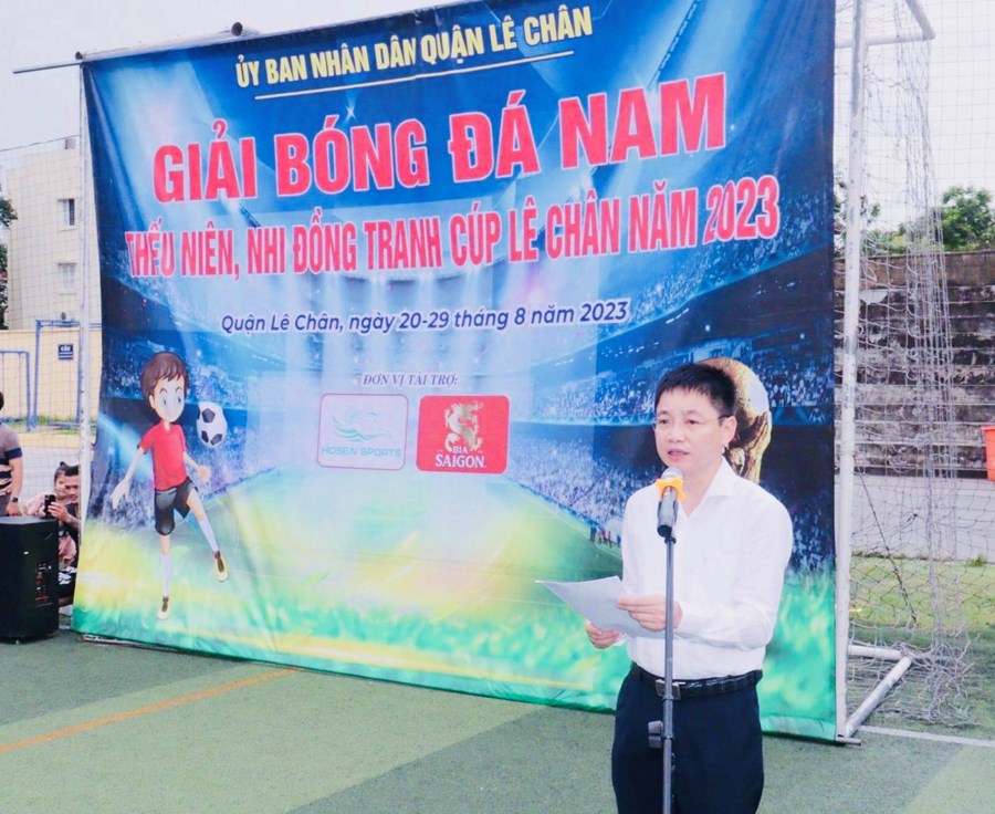 Sáng ngày 20/8, quận Lê Chân tổ chức Khai mạc giải Bóng đá nam thiếu niên, nhi đồng tranh cúp Lê Chân năm 2023. Đây là một trong nhiều hoạt động nằm trong chuỗi các hoạt động chào mừng kỷ niệm 78 năm Ngày Cách mạng Tháng Tám thành công (19/8/1945-19/8/2023) và Quốc khánh nước CHXHCN Việt Nam (02/9/1945-02/9/2023).