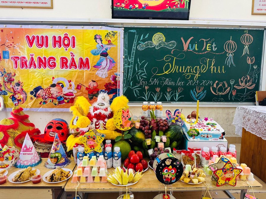 🎊🎊Đến tham dự và chung vui cùng các lớp trong khối 5 có ban đại diện PHHS của 7 lớp tham gia. Mỗi lớp một ý tưởng nhưng tất cả đều toát lên sự tinh tế, khéo léo và ấn tượng. Các em học sinh vô cùng hào hứng khi được tìm hiểu về ý nghĩa của ngày Tết Trung thu, được xem múa lân, đặc biệt các em còn có cơ hội được tự làm những sản phẩm đẹp: đèn lồng, mặt nạ...