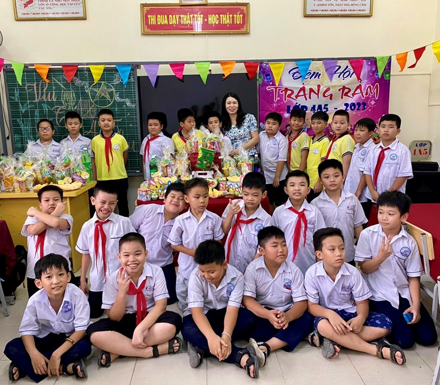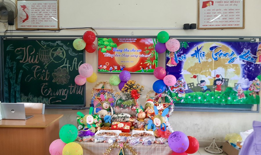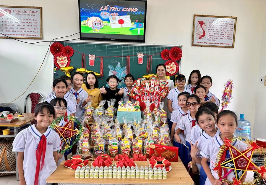 Trong không khí rộn ràng và vui vẻ, các em học sinh được cùng nhau trang trí lớp học, làm đèn lồng, chuẩn bị mâm ngũ quả để đón Trung thu. Dưới sự dẫn dắt của cô giáo chủ nhiệm, các em được tìm hiểu đôi nét về phong tục truyền thống cũng như những giá trị tinh thần mà ngày Tết Trung thu mang lại. Các em được thỏa thích vui chơi và tận hưởng một Tết Trung thu ý nghĩa, ấm áp và đong đầy yêu thương. Hi vọng đây sẽ là nguồn động lực để các em tiếp tục phấn đấu và rèn luyện trong học tập cũng như trong cuộc sống.