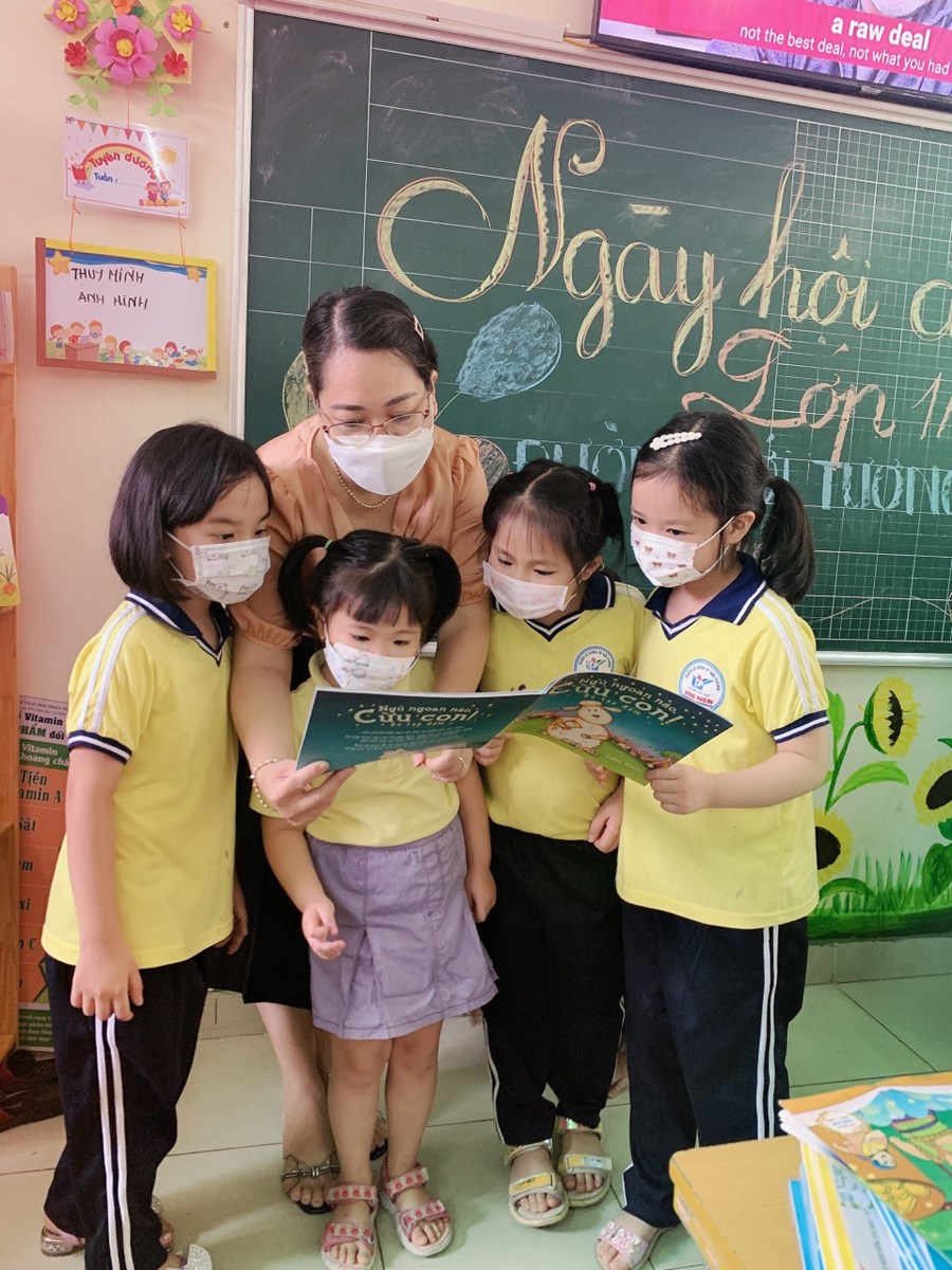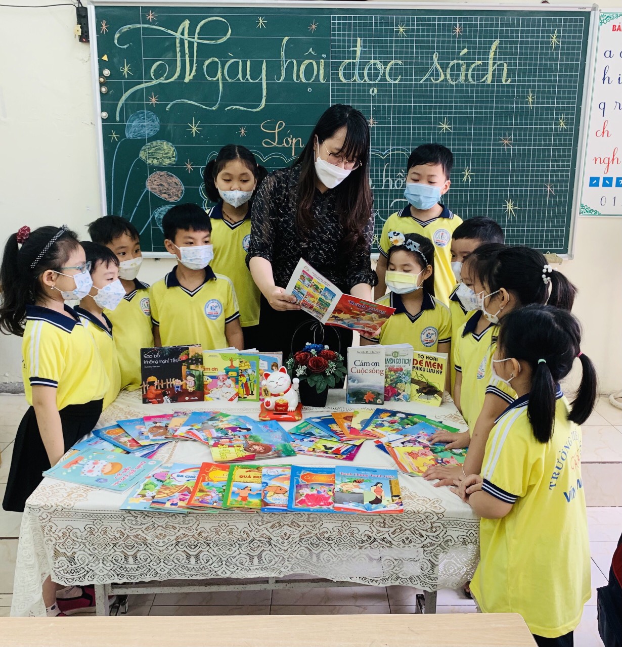 Cô giáo và các em học sinh lớp 2A2 trong ngày hội đọc sách