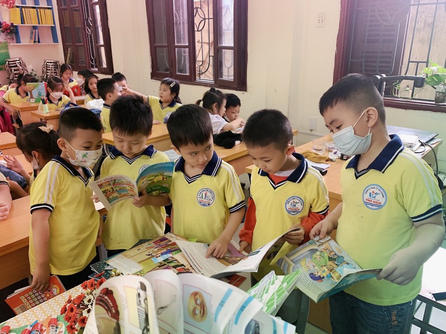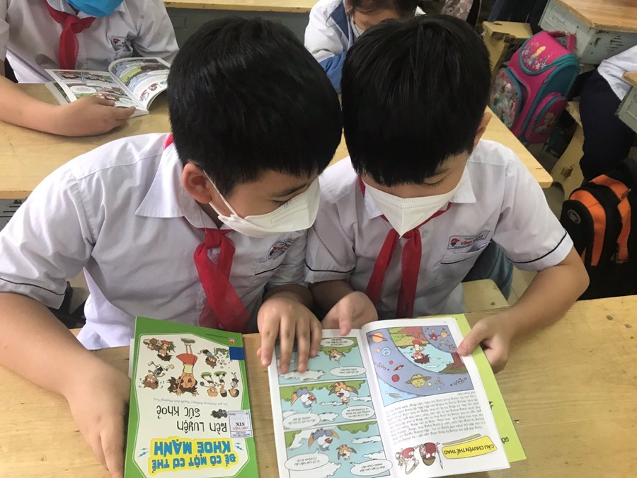 Các bạn học sinh lớp 5A1 cùng đọc sách